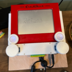 The Mad Wrapper created a machine that draws a person’s name on an Etch-A Sketch. A key is attached to a gift. Insert the key and the machine automatically draws a person’s name to indicate who should open the gift. And it even draws pictures!