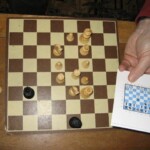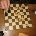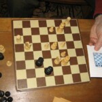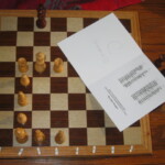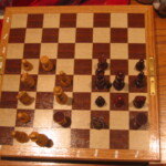 Play a bizarre game of bad chess indicated by moves on a card attached to a package. The game ends when someone’s initial(s) are presented by the final standing pieces.