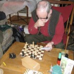 The letter formed on the board also happens to be the first initial of a spectator in the room. Sometimes, to clarify the statement, two letters are used — two initials of a bystander at Christmas celebration. A clever Mad Wrapper might know how to move pieces into a three-letter formation but this Mad Wrapper has not attempted such a feat.