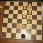 But finally, something extraordinary happens. After the last Black piece has been knocked off the board, and the undefended King stands near the sideline alone nervous and