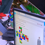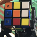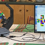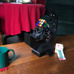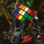 A Rubik’s Cube solver robot that solves a person’s initials on the face of a 3×3 Rubik’s Cube. Type in you code name to a webpage and click “Solve”. The pieces move around for a few minutes and eventually come to rest with three letters on the front face — A person’s initials!