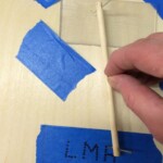 - Stick a 2″ by 5″ piece of masking tape to a surface such as a piece of plywood.