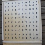 - There is now a grid of letters written in sharpie but there are also likely to be many unfilled spaces (unless you have a large family). Randomly fill in all the blanks with a whim of letters. I used an overabundance of letters from “THE MAD WRAPPER”.